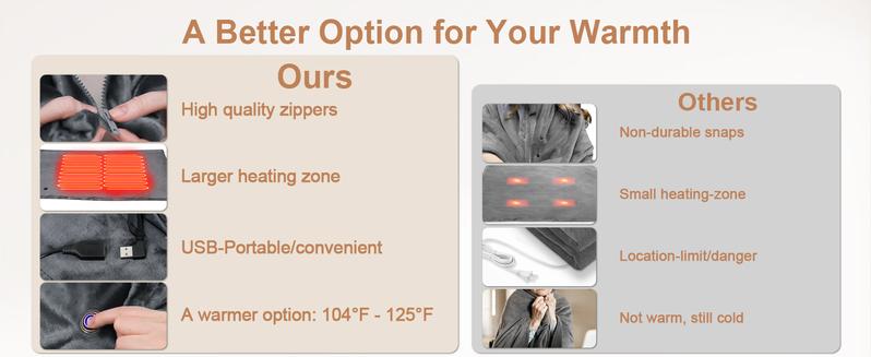 - Warp your shoulders and chest with a zipper design. This wearable heated blanket offers warmth and stays in place. Convenient for sitting or standing. ๐งฅ